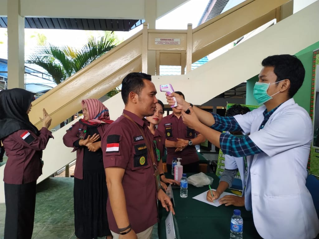 Antisipasi Covid-19 PN Bengkalis dan Dokter RSUD Bengkalis Cek Suhu Badan Karyawan